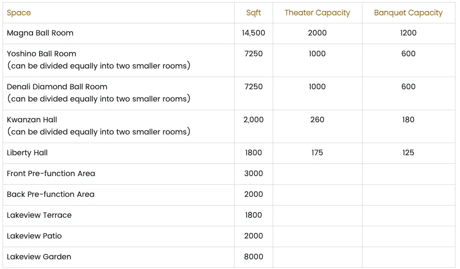 ☑ 14,500 sq ft Grand Ballroom (subdividable into four rooms)